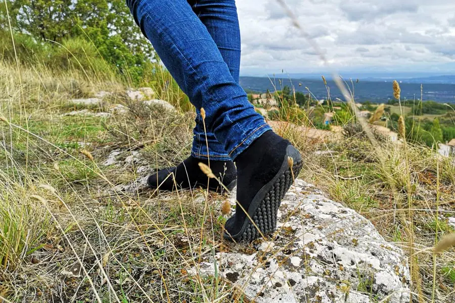 Das Gehen in Barfußschuhen unterscheidet sich vom Gehen in herkömmlichen Schuhen. Durch die dünne Sohle von Barfußschuhen ist Deine Ferse bei jedem Schritt z.B. deutlich näher zum Untergrund als in normalen Straßenschuhen, was einen Einfluss auf die Geh-Bewegung nimmt. Solltest Du Dir eine gänzlich falsche Gangart in Barfußschuhen angewöhnen, also z.B. in einer übertriebenen Art und Weise auf Ferse oder Vorfuß auftreten, werden Deine Sehnen und Gelenke langfristig überlastet, was in der Folge zu Entzündungen sowie zu Schmerzen im Körper, z.B. an Fuß, Knie oder Hüfte führen kann.